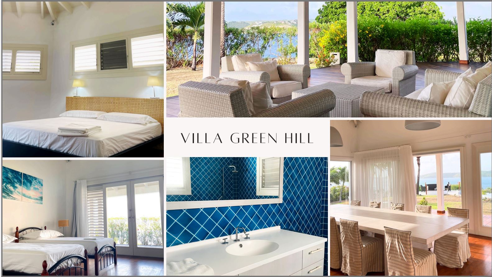 Villa Green Hill is a single level 3,425 sq ft villa with 4 bedroom suites, 5 bathrooms, swimming pool and pool deck